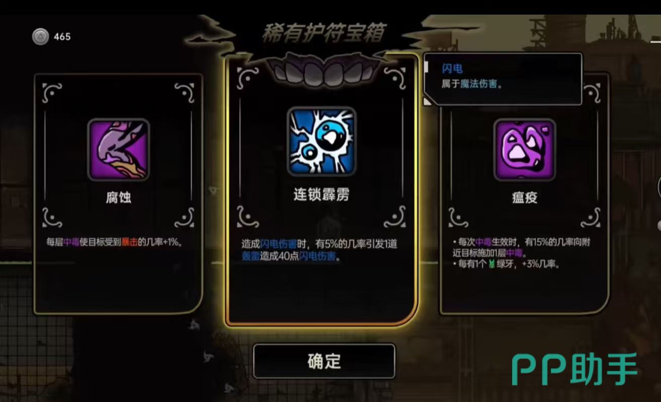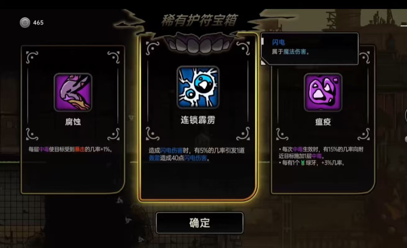 稀有护符宝箱是构筑成型前最重要的机遇节点,通常可开出紫金级护符,甚至直接决定流派能否成立。在位面1-2阶段,强烈推荐优先开启此类宝箱,成功获取关键护符即可实现战力飞跃——例如飞羽流期望获得“强击羽”,爆炸流目标为“回旋镖”,一旦获取,战斗效率将大幅提升。若开出非目标护符,在单机模式下可通过强退重进的方式尝试刷新,降低因运气不佳带来的风险。当核心体系已完善后,后期可适当减少对此类房间的投入,转而将资源用于升级房间或商店补给,保障持续作战能力。