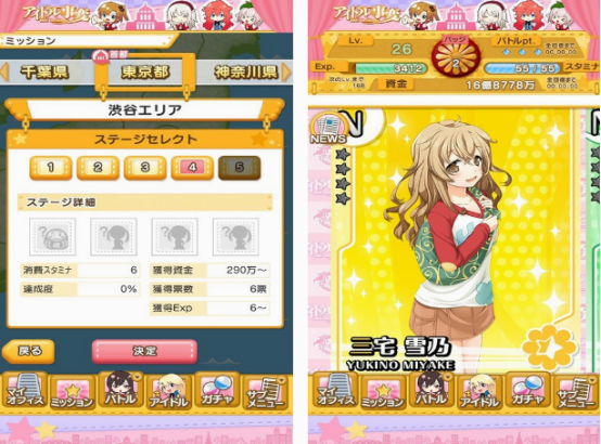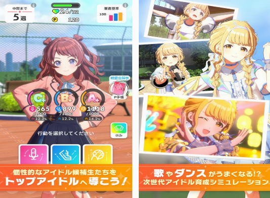 这款同样是由日本的制作公司,为大家所制作有关于偶像的游戏,无论是里面的文字或者是人物设计,都是以二次元的风格,甚至是日语设计的。里面有超多漂亮的美少女角色,通过对其进行的培养以后,可帮助他们获得很高的收入。在每次参与比赛的过程中,也需要得到更多人的支持,这样可帮助玩家获得更高的票数,涵盖超多的服饰,你可自由选择。