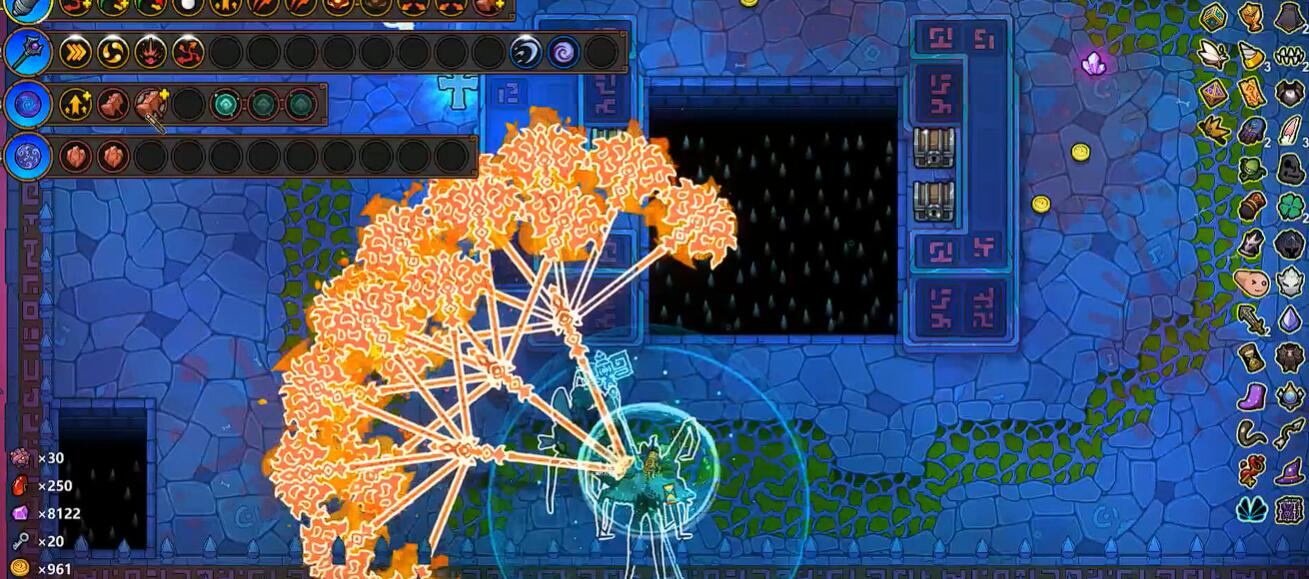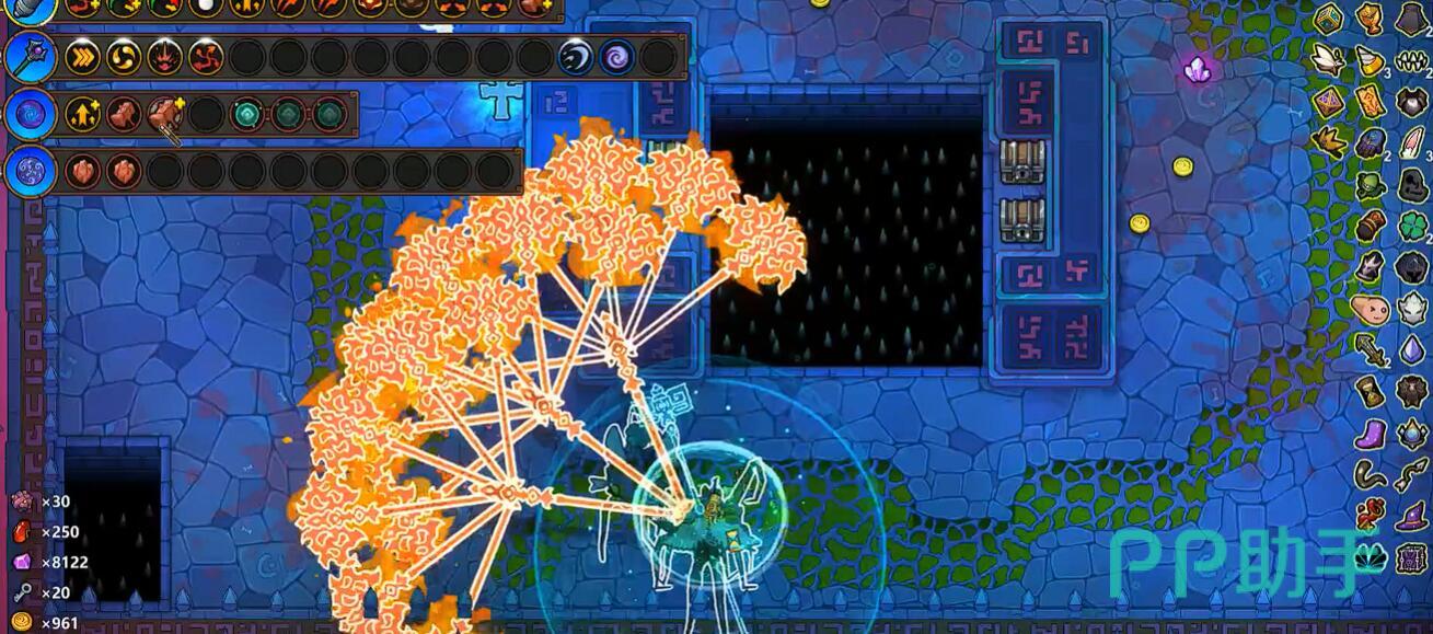 实战中建议采用环绕式走位策略,维持与敌方单位1.5至2.0米的距离,确保所有攻击均能覆盖多个目标。优先锁定精英单位进行打击,以利用范围伤害波及周边小怪。在BOSS战中,应选择其技能盲区站位,持续输出同时规避高额伤害。能量管理方面,当储能之匣积攒满100点能量时,应优先对集群敌人释放以最大化附加伤害。推荐携带宁静之花符文(每秒恢复5点蓝量),防止因蓝耗中断输出节奏。遭遇包围时可借助15%移速优势快速脱离,生命值低于30%时切换护盾符文(提供5秒内30%减伤)保障生存。