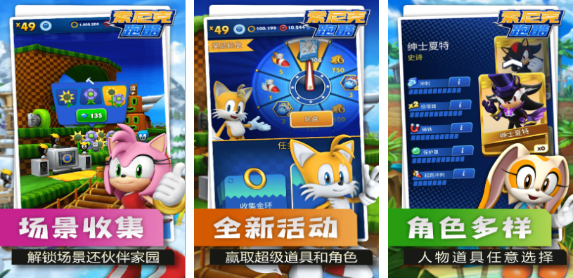 索尼克跑酷是世嘉公司打造的“索尼克”IP竖屏游戏,划动屏幕的跑酷操作相对丝滑好掌握,场景和伙伴多样化都能使用金环解锁,每个伙伴携带的跑酷技能与众不同能带来沉浸感,个性化的全新活动不断推出让大家流连忘返,各种成就任务完成后即可获取超多的道具,各位索尼克游戏爱好者滑动屏幕尽情奔跑吧。