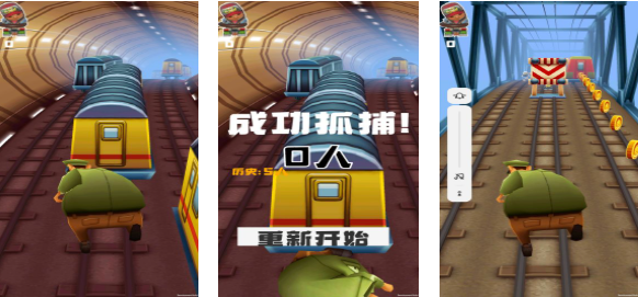 这是款需要扮演保安大叔抓捕小屁孩的酷跑类单机作品,操控滑稽的保安大叔跑酷抓捕的流程很滑稽,同时也可以吃金币为保安大叔更换皮肤,获得的奖励分数跟抓捕的小孩数量成正比,设定在地铁站的地图设定跟“地铁跑酷”如出一辙,画面虽然粗糙但提供的跑酷快感不比其他的跑酷类游戏差,你也试着以保安的身份保护好地铁站吧。