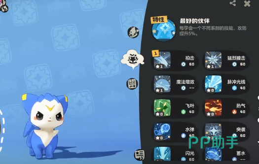 具体操作路径为:打开罗盘→进入精灵图鉴→点击右上角星形图标。该界面包含两大核心模块:“技能学习”用于解锁新招式;“技能调整”则支持对已习得技能进行编组与排序。每只精灵最多可装备四项技能,合理搭配直接影响实战表现。新手推荐采用以下基础配比逻辑:优先保留至少一个零星消耗技能,确保野外遭遇战中不会因能量耗尽而陷入“无技可用”的窘境;再配置两招消耗为1~2星的中低耗技能,兼顾输出效率与续航稳定性。