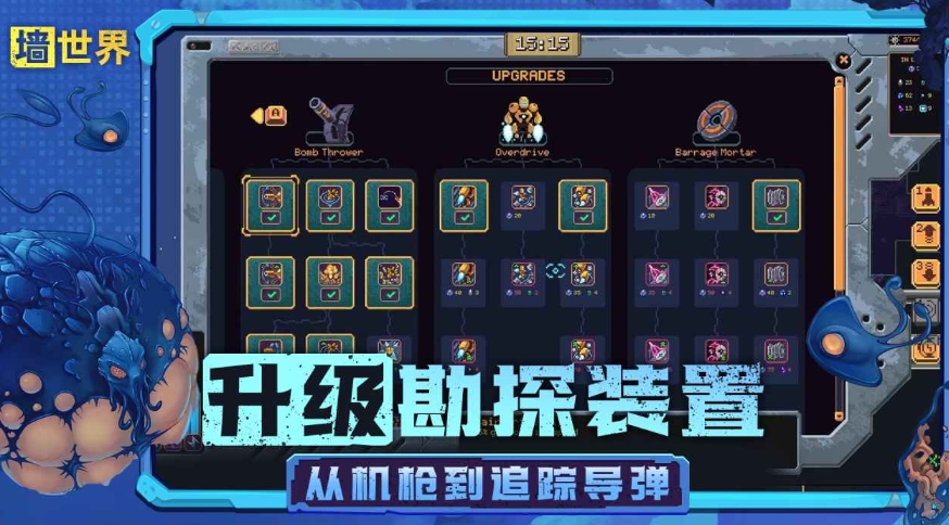 战斗系统与环境威胁共同构成了游戏的挑战维度,墙世界中潜藏着各类原生生物与异变怪物,它们会随着玩家探索深度的增加而展现出更强的攻击性与独特的行为模式,玩家可通过装配不同类型的武器应对威胁,从基础的远程射击装备到具备范围攻击效果的特殊武器,每种武器都有其适用场景,需要根据遭遇的敌人特性灵活选择,战斗并非唯一的应对方式,利用地形掩体规避追击、借助机械蜘蛛的防御机制暂避锋芒,或是通过快速挖掘通道绕开强敌,多种应对策略的存在让战斗环节更具策略弹性。