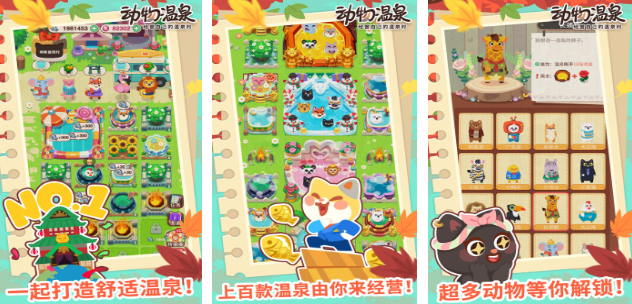 这是一款放置游戏的游戏,整个游戏操作简单,玩家可以迅速的掌握玩法。可以邀请小动物去泡温泉,还可以去享受整个游戏的过程。游戏将温泉村作为背景,拥有唯美的大自然景色,整体的风格真的比较治愈人心,可以给大家打造出一个宁静的世界。游戏里面还会有自动收益,还有自动合成的玩法,并不需要频繁的操作。