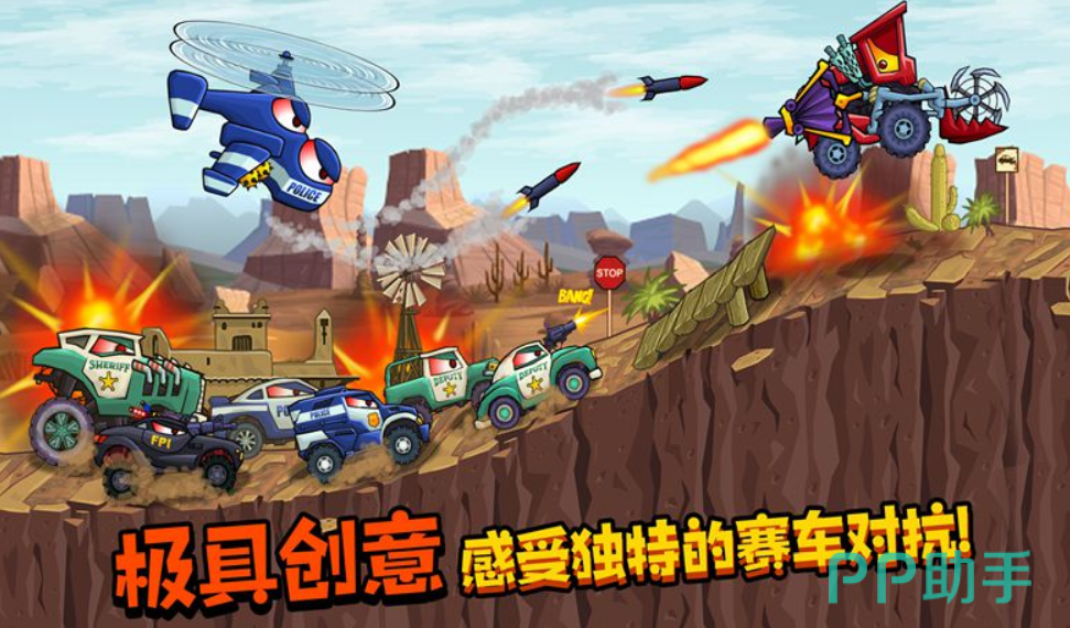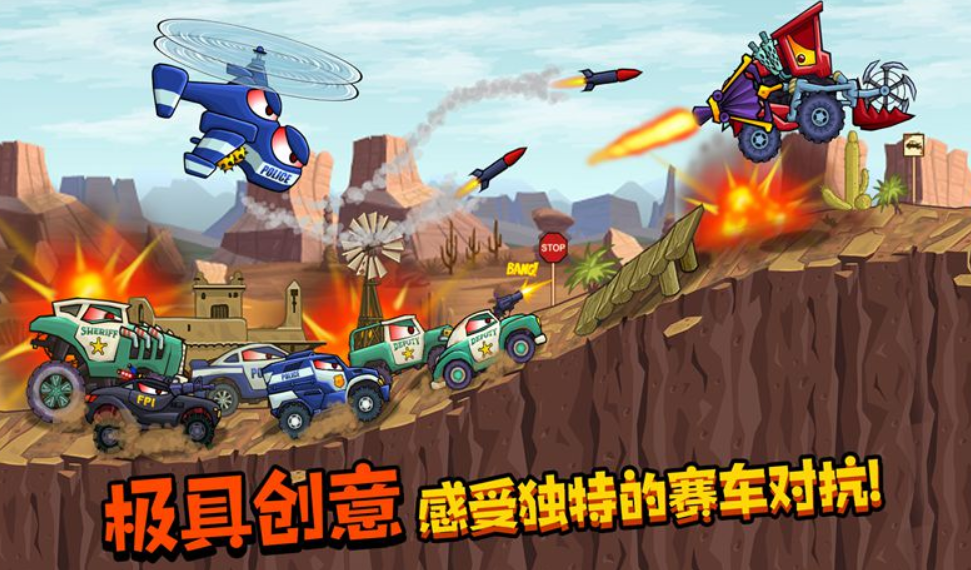 每一种车辆根据类型的不同,都会有相应的破坏效果,虽然是手绘2d场景,但里面也会有不同的场景以及天气变化,玩家可以在这种变化中感受到非常真实的赛车对抗,另外游戏里还会设定大量赛道,玩家可以在城市的街道上,不断和其他成员展开一场结合的力量和速度的比拼,只有把其他的成员撞下赛道,玩家才能有机会超越对手,赢得关卡的胜利之后可以获得大量的金币奖励,利用这些金币,玩家可以购买更多的装备提升能力。