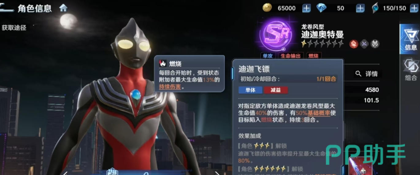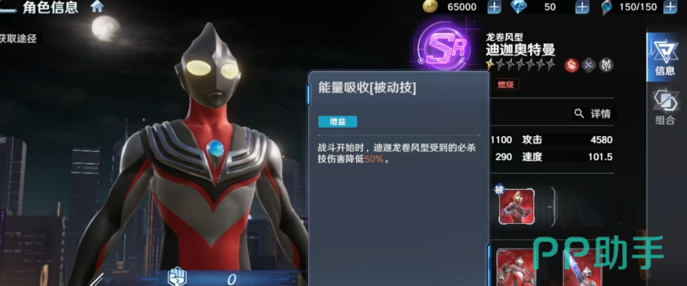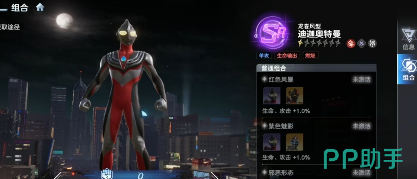 在《奥特曼》系列授权手游中,迪迦奥特曼龙卷风型作为自然系进化的SR级角色,凭借其独特的气流操控机制与高生存适配性,成为前期阵容构建中的关键战术支点。该形态并非以瞬时爆发见长,而是通过“能量吸收”“最大生命值百分比伤害”及“燃烧”三重机制形成闭环式攻防体系,契合资源有限阶段的策略需求。