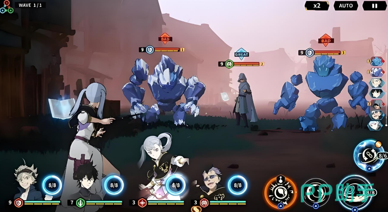 游戏的战斗流程由多个WAVE阶段构成,每完成一个阶段需击败当前标记的敌人,随后自动进入下一波敌人目标。只有当所有WAVE敌人都被成功击倒后,战斗才会判定为胜利。战斗采用回合制模式,玩家在配置好出战阵容后即可启动战斗。每个角色的出手顺序由行动条决定,在屏幕右侧可实时查看各角色的行动轮次安排。