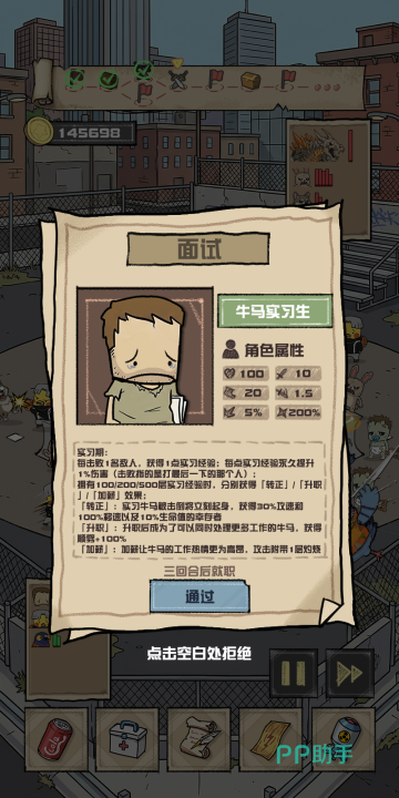 游戏采用强目标驱动式叙事结构:从天台突围起步,逐步建立防御据点,招募并培养不同特性的“兄弟”角色,持续扩充资源储备,最终组织反攻行动,夺回校园控制权。各阶段任务逻辑清晰、反馈及时,无冗余引导与拖沓流程,整体推进张力饱满,契合快节奏生活场景下的沉浸需求。