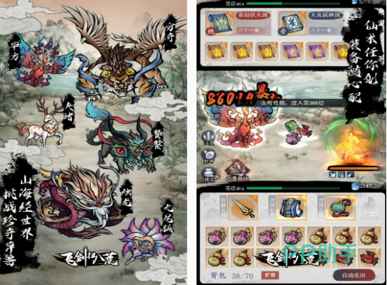 此休闲游戏中的玩家,可看到小说当中的剧情内容,你将成为一个除妖的大师,在面对特别厉害的大魔王时,需要通过不断修炼的方式,来与其挑战。还有很多的武功秘籍以及诸多的仙剑通,过提升属性等方式,帮助你在未知的八荒领域当中,与妖兽展开对决,也能有机会成为一代宗师。所具备的特色玩法,帮助你享受修仙之路所具备的漫长。