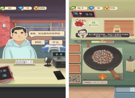 作为以老爹经营大排量为主的模拟经营游戏,除了具备简约的画风,同时也能让你成为大排档的老板。在这里面,通过自由开放的烹饪方法,炒出满足客人需求的食物。还有真实的物理颠簸,以及炒菜时的各种食材。通过体验老爹生活,让你享受有趣又解压的游戏特色,除了以制作美食为主,还有买菜备菜以及对厨具的清洁等。
