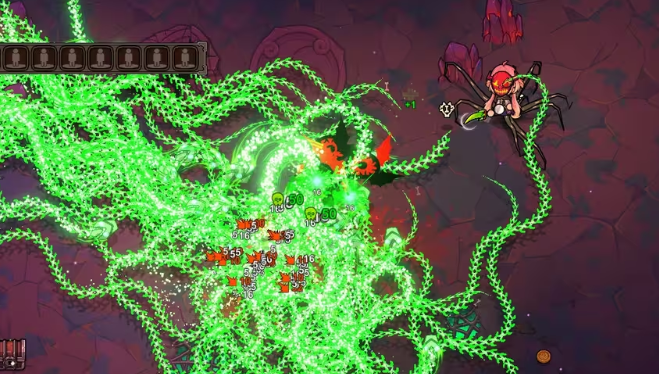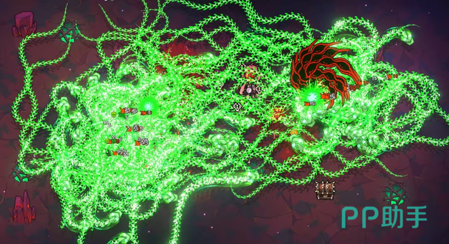 在技能升级策略上,应优先提升分裂类法术等级,以便在中后期获得更强的群体压制力。高阶版本的技能协同作用下,该流派的群攻表现尤为突出。装备方面,“无尽之杖”是理想选择,其提供的属性加成与插槽数量完美契合冥蛇流的需求,特别适合用于强化自动导航与分裂效果。另一优选武器为“生锈手炮”,其高射速特性适用于副本攻坚场景。若装备槽位紧张,可通过遗物系统补充加速类增益,弥补输出节奏上的不足。