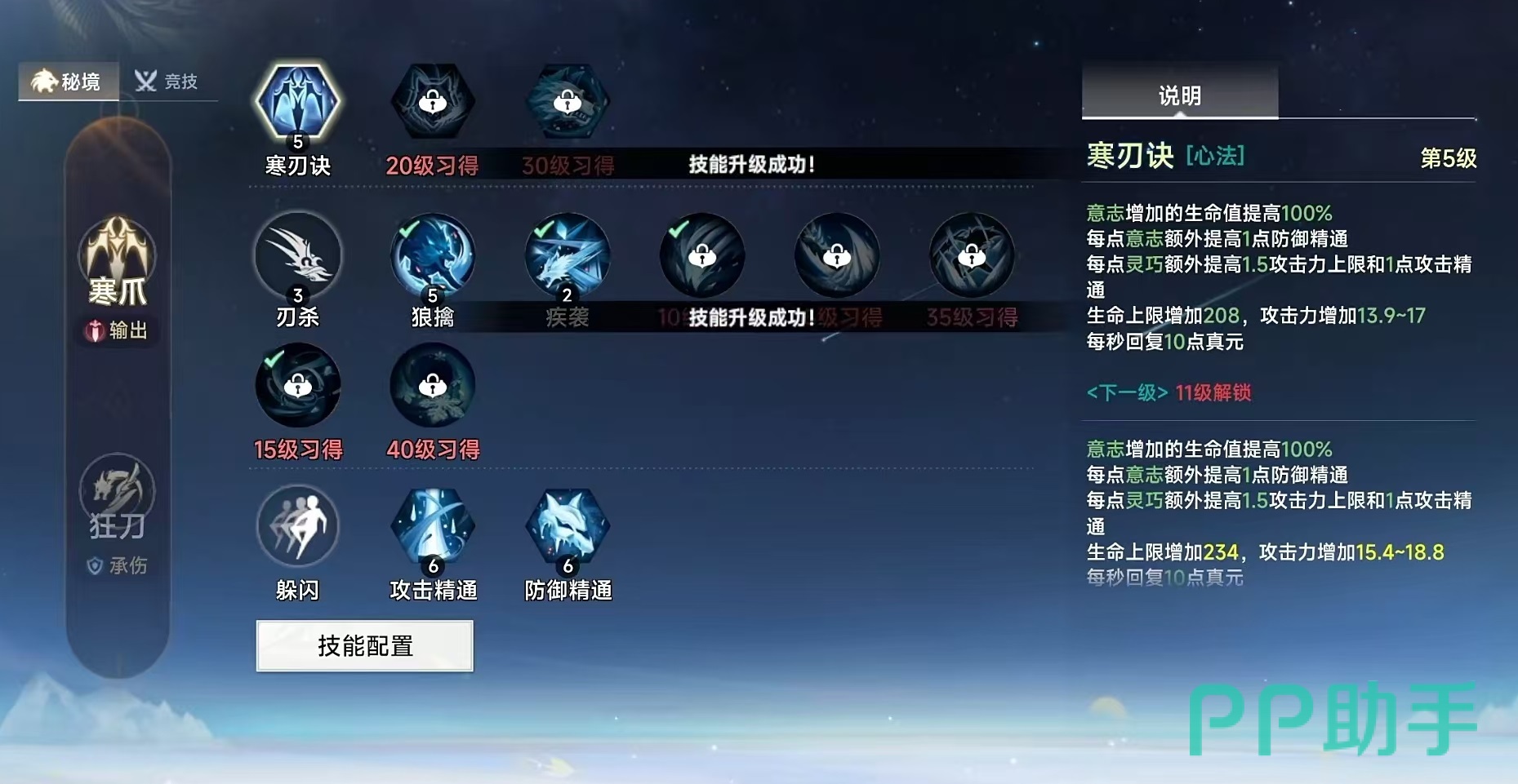 总体而言,贪狼门派提供了多样化的战斗体验。寒爪适合偏好高操作、追求瞬间爆发的玩家,能够快速切入敌阵后排完成斩杀。但其对操作精度要求较高,需精准掌握进攻与闪避时机,否则容易陷入被动局面。狂刀则更偏向团队辅助与前排承伤角色,虽然具备强大的生存与保护能力,但在使用技能时会消耗生命值,因此需要较强的续航手段支持长期作战。无论是资源分配还是角色养成,都对玩家的投入程度有一定要求。建议具备一定培养基础的玩家再考虑选择贪狼门派。