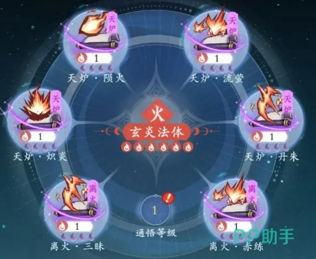 离火流派:核心神通为离火·三昧,搭配赤炼、炎舞和风卷可以进一步提升灼烧效果,每多装配一个离火神通,灼烧伤害提升10%。