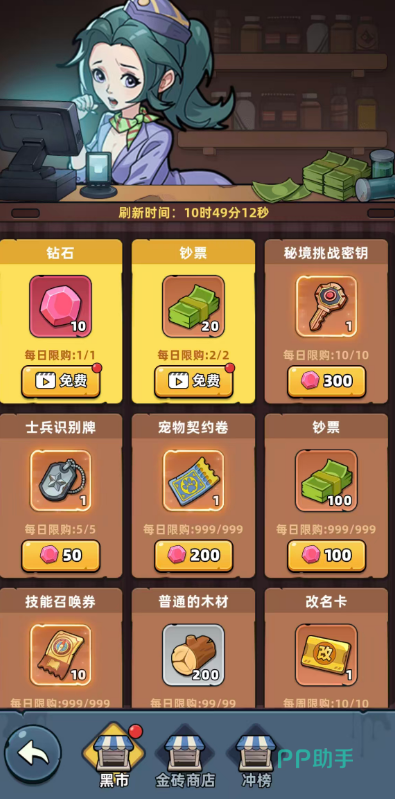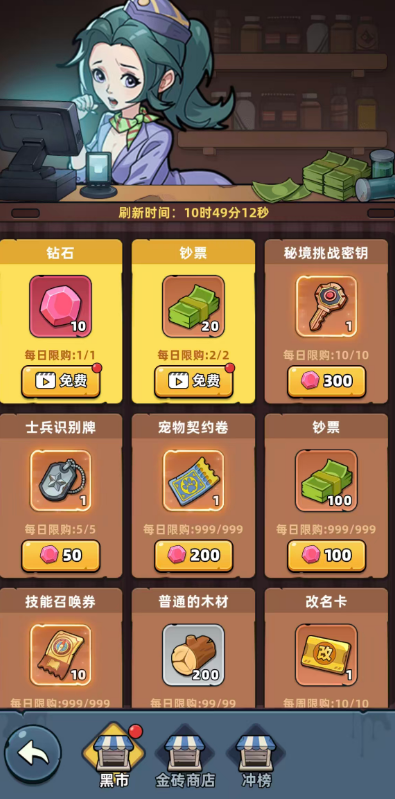 若已解锁实验塔,请务必打满每日挑战次数。该玩法前期资源产出效率极高,尤其罐头与钞票需求旺盛;达成指定层数还可额外领取首通罐头奖励。此外,黑市商店每日提供限量士兵识别牌,建议全额购入——因该道具消耗量随培养角色数量线性增长,提前储备可显著缩短后期突破等待周期。