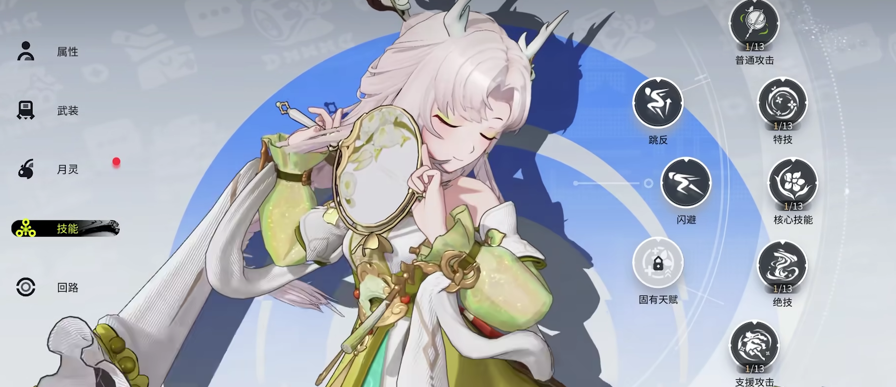 青门隐外观设计极具东方美学特征:雪白麻花辫、素雅服饰、灵动身姿,整体形象契合国风审美体系。所有主动技能均围绕“音律”与“舞势”展开,兼具治疗、增益与中等输出能力。角色成长依赖技能树系统,加点策略需严格遵循优先级——治疗效果强化 > 生命值提升 > 攻击伤害强化,此为最优培养路径。