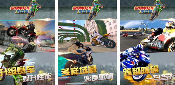 在这款挑战极限的摩托赛车手游里,大家可以体验到多种玩法模式。比如竞技性很高,规则众多的职业模式。还有限时模式,大家将必须在规定时间内驾驶摩托到达终点。还有无尽模式,大家将用自己的绝佳驾驶技术一次次的刷新自己的上限。游戏里还有车库的玩法,各种豪华摩托都将陈列在自己的仓库里。