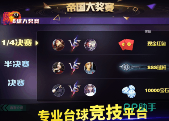 在这款手游里,大家可以遇到世界各地的台球爱好者,他们也许是大家挑战赛上的对手,也可以是交流球技的好友。大家将在游戏里挑战自己的极限,在一场场比赛中打出自己的名声,将各种台球国际大奖拿到手软。并且游戏的成就系统也在激励着大家增长球技。喜欢台球运动的玩家一定要来试试哦!