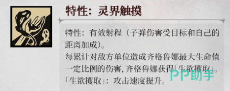 齐格鲁娜的特性也极大地增强了她的战斗潜力。灵界触摸特性使得她的攻击可以跨越距离,给敌人带来威胁。无论敌人与她的距离有多远,只要在她的有效射程内,齐格鲁娜的攻击就能命中目标。而随着攻击的积累,她的“生欲搜取”也会逐渐叠加,带来更高的攻击速度,使她在持续战斗中具备极强的爆发力。