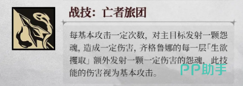 齐格鲁娜的亡者旅团战技则是她的另一大亮点。通过一定次数的基本攻击,齐格鲁娜会向敌方发射怨魂,造成额外伤害。而每层“生欲搜取”都会进一步增加怨魂的发射次数,意味着她可以在短时间内对敌人造成更大压力。这使得齐格鲁娜不仅是一个单体输出者,还是一个能够在群体战斗中发挥巨大作用的角色。