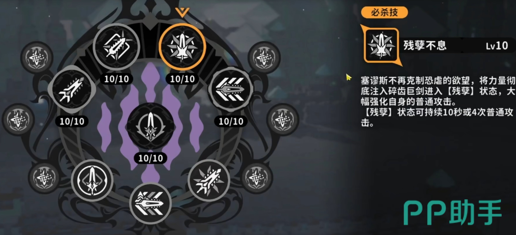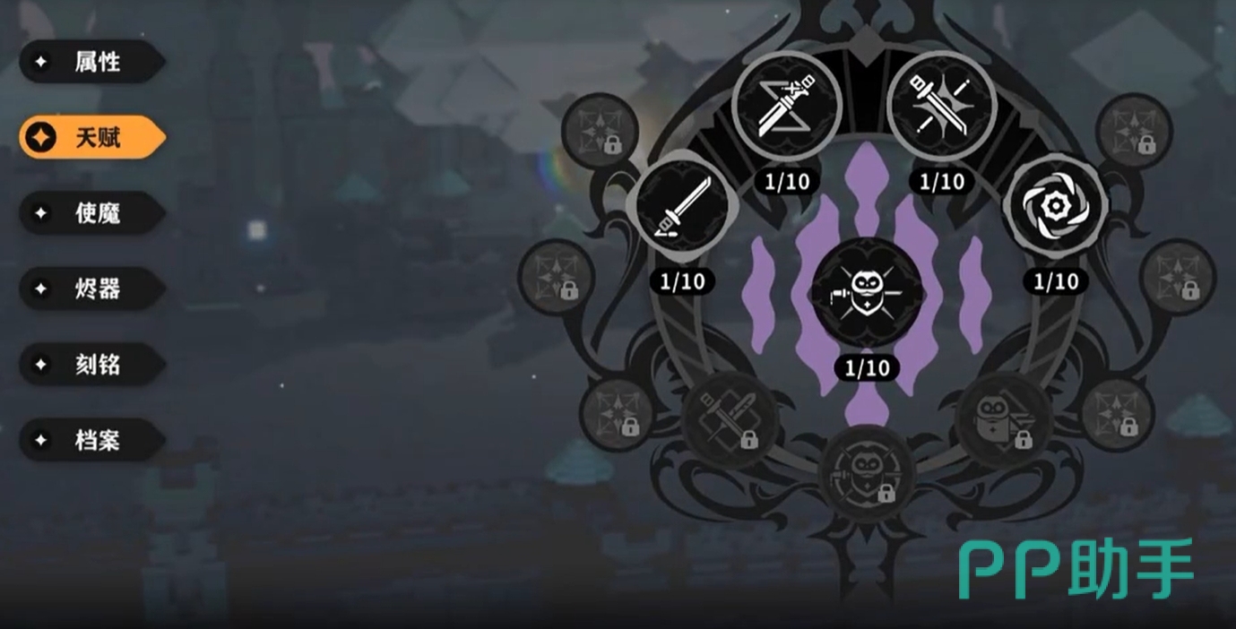 每位角色都拥有独立的天赋树结构,虽然不同角色的天赋效果各异,但整体布局和功能划分保持一致。位于中心位置的是核心天赋,强化后可大幅提升角色独有的特性能力。正上方四个节点分别对应普攻与技能类天赋,直接强化角色的基础攻击与技能输出。下方区域为升阶被动,随角色升阶自动解锁,不可手动升级。最外层共六个天赋点,点亮后提供基础属性加成,属于纯数值型增益。