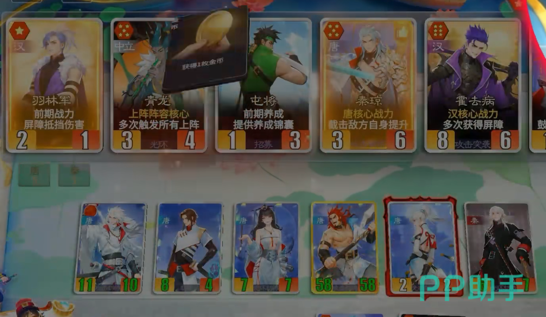 核心策略聚焦于“阵营羁绊”构建。战场最多部署七名部将,每位部将归属固定阵营,如秦国、魏国、妖族、蜀国等。当同一阵营部将数量达到指定阈值(如3人或5人),即可激活对应阵营特效:秦国羁绊倾向提升斩杀率;魏国羁绊支持资源掠夺与转化;妖族羁绊可召唤额外作战单位;蜀国羁绊则提供差异化属性加成。这些效果非简单叠加,而是形成协同生态。实战中需动态评估商店刷新内容,权衡即时战力与长期羁绊成型需求——有时暂留低战力部将,正是为后续关键羁绊预留空间。