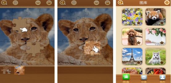 拼图类的游戏在人们心中有难以磨灭的位置,此游戏涵盖的图片类型有很多,比如有非常美丽的花朵以及各种可爱的小动物等等,在开局后完整的图片,都会被随机打乱顺序,您看到这些小碎片时,就可通过滑动屏幕的方式完成拼图的任务,此游戏采用磁吸的效果,只要点击到正确的位置就能自动合成。此游戏提供了五大不同的难度以及两种经典的玩法。