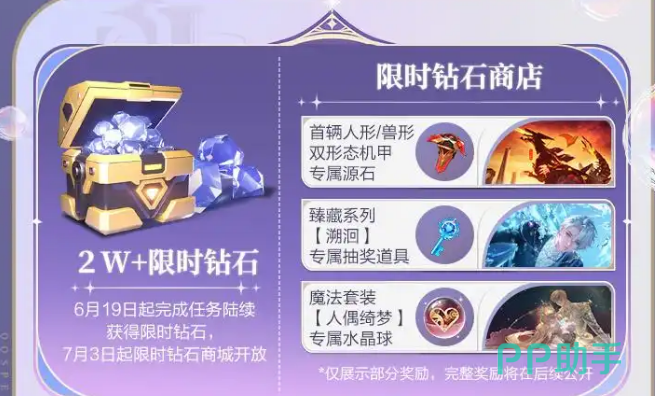 当然,七周年活动的福利可不止这些。如果你还想要更多的钻石奖励,那么钻石任务绝对不能放过。通过完成一系列简单任务,你将获得大量的钻石。这些钻石不仅能用来购买游戏内的道具,还能在钻石商店兑换各类精美奖励,赶紧积攒起来,等着用它们换取心仪的好物吧!