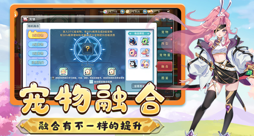 游戏里除了角色单独冒险之外,还会有宠物的设定,每一个宠物也都会有不同的特性,玩家可以直接借助这些宠物,展现更加优秀的能力,同时也可以通过合成的方式,让这些宠物可以互相融合,这样不但能融合出一个全新的物种角色,整体的能力也会发生变化,这样就能带领这些有着较强战斗能力的宠物,寻找敌人不断参与到战斗中,虽然是像素设定,但里面呈现的画面是非常精美的,玩家甚至还可以和场景互动或者搜寻场景里的宝藏。