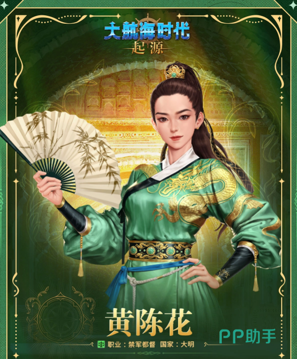 角色背景设定融合真实海事传统与虚构晋升逻辑:黄陈花家族世代从事近海航运,她自幼习练操船、罗盘推演与海图判读,成年后率舰剿灭倭寇流匪、护航商旅,因功授禁军都督衔。这一履历直接映射其技能体系——兼具战术输出、灾害应对与商业运营三重能力,打破传统提督单一定位,形成差异化成长路径。