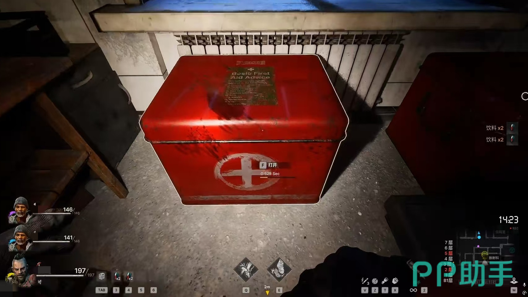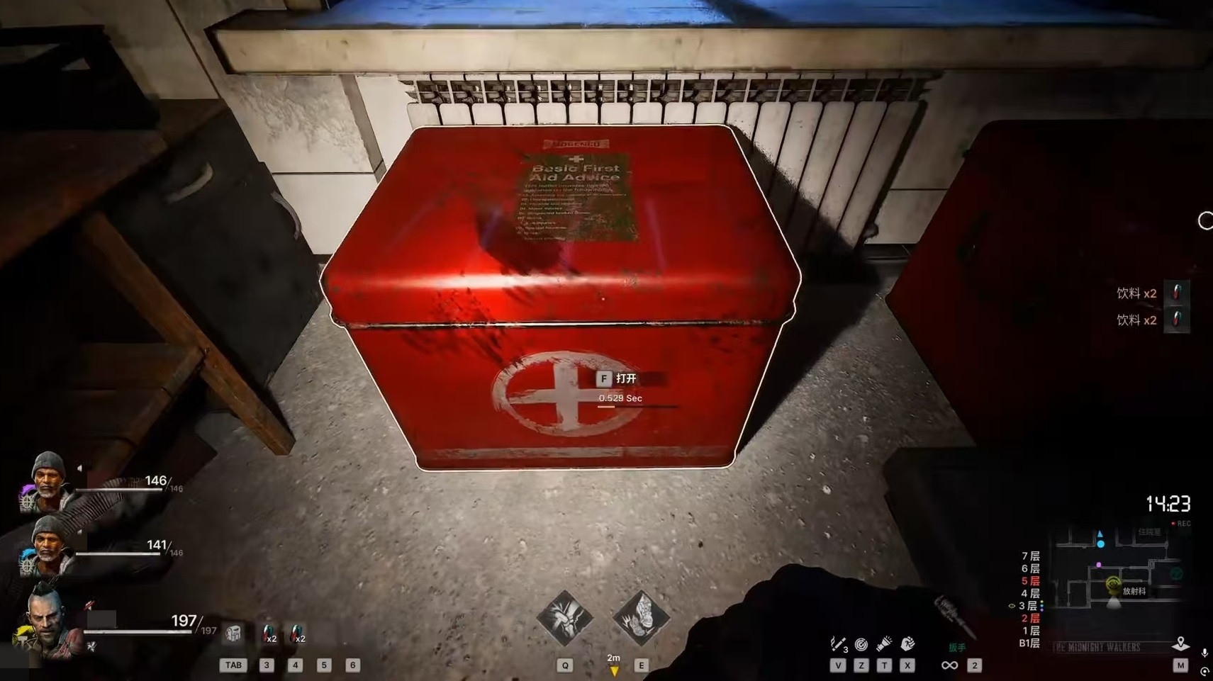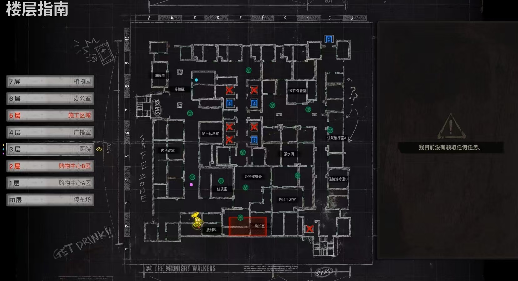 蓝卡房位于7楼左上区域,需消耗蓝色门禁卡开启。内部固定刷新金色武器箱、金色单件装备及紫色图纸。进入前务必清空周边丧尸,防止开门瞬间被围堵导致撤离失败。推荐操作动线:进门→速开武器箱→再处理保险柜,确保关键资源优先落袋。