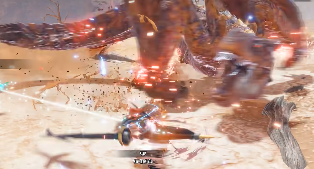 在实际对战中,并不需要机械地按照固定顺序使用两种突刺方式。玩家应根据怪物的动作节奏灵活切换。例如,当怪物处于后撤状态时,可利用中段突刺快速追击;而在需要维持站位、等待时机时,则以上段突刺稳住阵脚。横扫虽然无法连续施展,但可以无缝插入到任何突刺连段之中,合理运用能显著提升整体输出效率。此外,长枪的防御机制也极为出色——只要在攻击过程中及时举盾,就能有效抵挡大多数怪物的反击伤害,尤其是在完成最后一段突刺时,依然具备完整的防反能力。