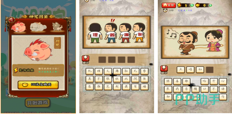知识挖宝是款专门为成语爱好者打造的益智休闲独立游戏,看图猜词和成语填空等学成语玩法很有意思,画面呈现复古还具备模型可爱的美术,简单点击提示功能即可快速显示成语,消耗体力值参与闯关的游戏形式也不肝不氪,通过完成成语闯关任务会让自身智商得到开发,还可解锁图鉴体系让自己拥有可爱的小宠物。