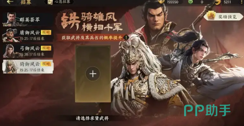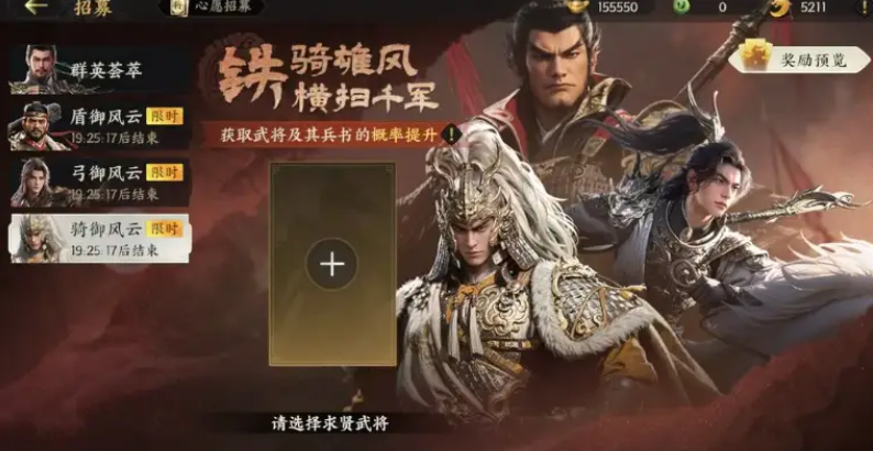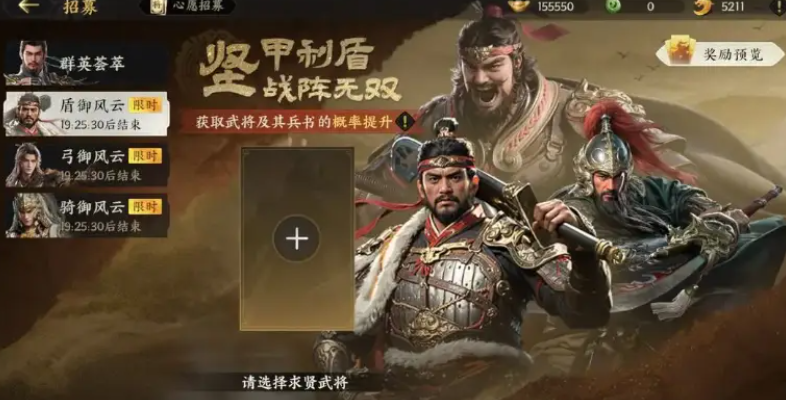 常驻卡池不仅适用于阵容补强,也可用于收集稀有兵书。当玩家希望针对特定武将或兵种构建队伍时,可转向定向招募卡池。该卡池按赛季划分,每赛季开放三轮,每轮聚焦某一兵种主题,如弓兵、骑兵或盾兵,便于玩家集中获取对应属性的武将。其最大特色在于支持心愿锁定功能,允许玩家指定目标武将,系统将大幅提升该武将的出现概率。
