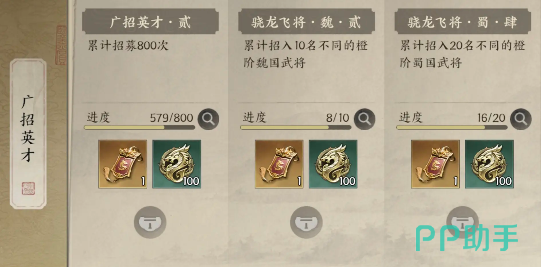 此外,游戏中重复获得的武将或多余兵书可通过心愿兑换系统转化为招募积分。建议兵书优先用于武将培养,而无使用价值的重复武将则可进行转化。当心愿值累积至100点时,下一次招募必得所选目标武将。因此,持续参与抽卡不仅能积累资源,还能稳步推进心愿目标的达成。