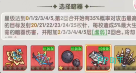 首推顶级暗器——孔雀翎,这款装备无论从设计还是实战表现都堪称卓越。激活后可大幅提升角色整体战斗力,并带来可观的伤害加成。新手玩家建议在战斗节奏稳定或面临强敌时使用,以最大化属性增益效果。尤其在对抗高威胁目标时,需结合当前装备状态与战斗形势,在危急时刻释放,有效压制对手气势。该暗器与唐三角色深度关联,具备极强的单体打击能力,每两回合即可触发一次密集钢针攻击,发射数量可达30至40根,输出频率高且覆盖范围广。