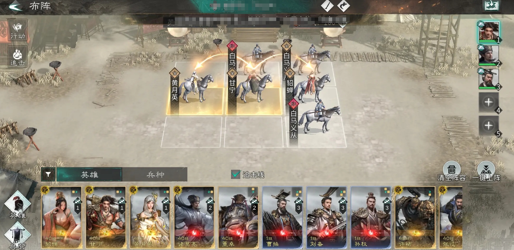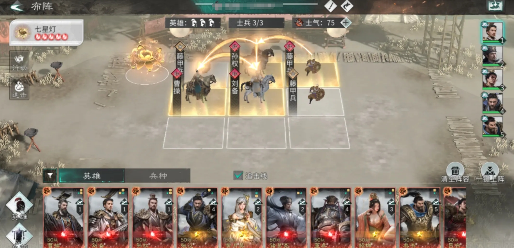 由三大势力之主组建成的队伍,他们之间能互拐,也具备着叠加属性的能力和优秀的爆发伤害,在各方面都可谓十分的完美,也是后期推图和PK竞技中很强力的一套阵容。刘备在该阵容中主要通过消耗仁德来为队伍进行持续性的回复,而且他所具有的驱散能力,也不担心队伍会被敌人控住。孙权则是能在四维比拼中帮助队伍获胜,且他的特性还可让队伍持续获得属性上的叠加,作战时长越久越对己方有利。操作是阵容里的输出,负责爆发和消灭残血敌人。