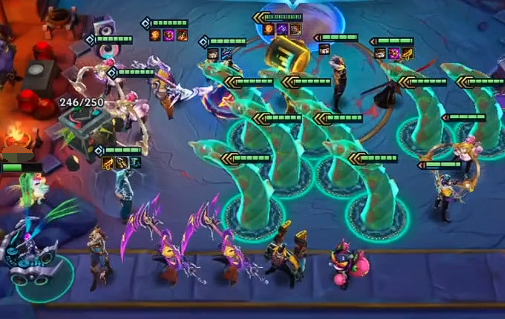 由于无需等待人口提升即可获取高费卡,游戏进程显著加快。此外,在1-3回合的选秀环节中,会出现胖胖龙提供的法球战利品,这些奖励会随着回合推进而升级,为玩家提供额外资源支持,这也是传统模式所不具备的独特机制。