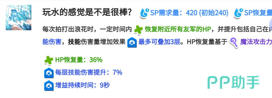 第二个技能“泳池后旋地”拥有32秒冷却时间,属于强力控场手段。发动时随机向敌方目标泼洒海水,造成高达480%的魔法伤害,并附加4秒沉默效果。在沉默期间,敌人无法释放任何技能,若能精准命中对方主力输出或治疗角色,将极大打乱敌方节奏。普通攻击机制也颇具特色,优先为当前生命值最低的友军提供治疗支持;当前排无人时,则自动转向血量最危险的后排单位进行补给。