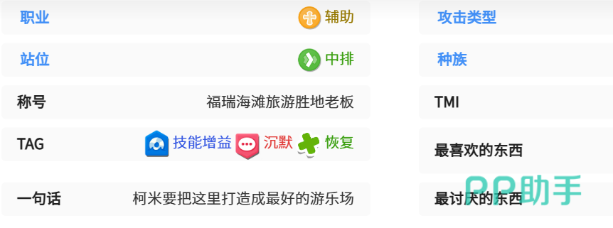 柯米的定位是中排魔法型辅助,性格偏向沉稳冷静。从站位设计来看,他无需承担前排承伤的压力,更适合在后方提供支援。新人玩家在组建队伍时可将其置于中间位置,具备良好的阵容适配性,能融入多种战术体系。其核心亮点在于大招“玩水的感觉是不是很棒”,该技能堪称团队续航的关键。释放后不仅能快速恢复友方单位的生命值,还能为周围前后排的队友叠加增益效果,最多叠加三层,每层提升70%的技能伤害,显著增强输出持续性。