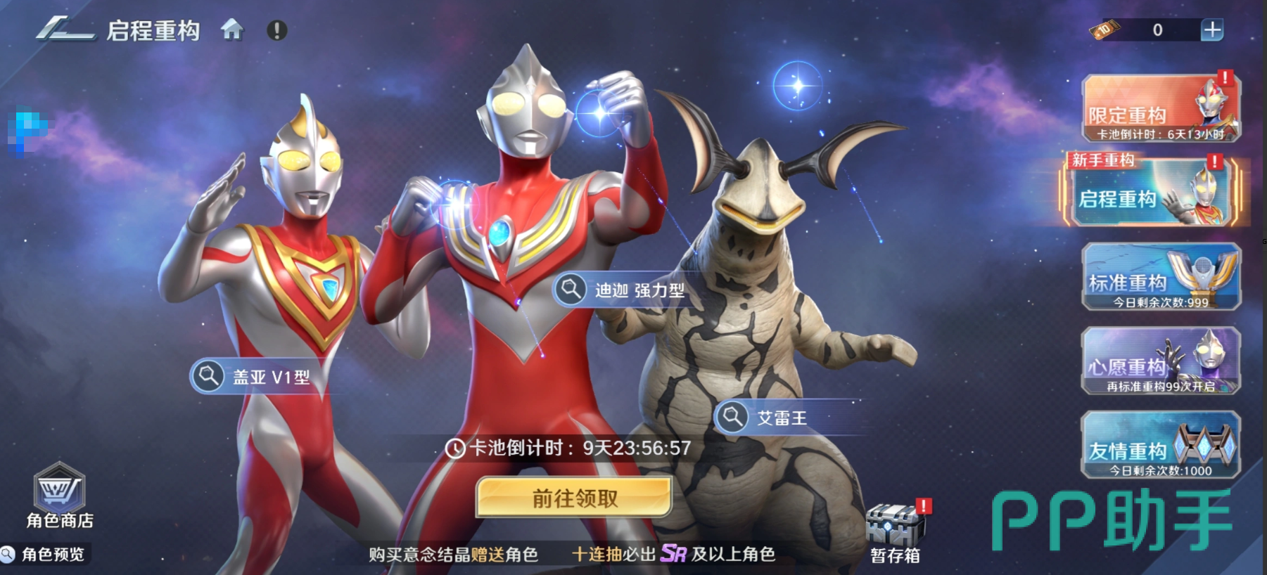 能量重构卡支持十连抽,每次使用消耗1张重构券,且保证当次抽取必得1张SSR品质奥特曼。该保底机制显著提升强力迪迦等高价值角色的获取确定性。此外,角色等级升至9级后,日常任务系统全面激活,完成指定行为可累积活跃度,达标后即可兑换额外能量重构卡,形成可持续的角色补强循环。