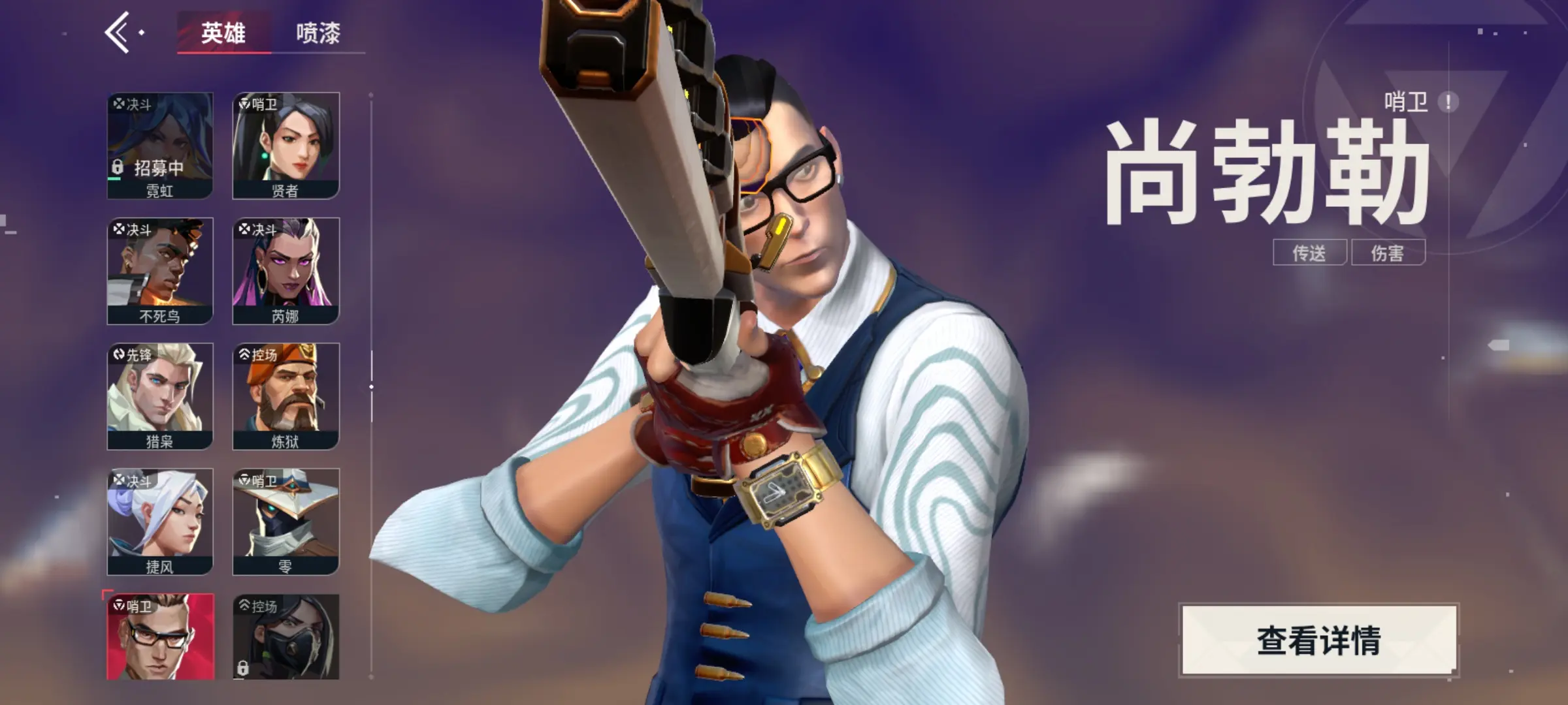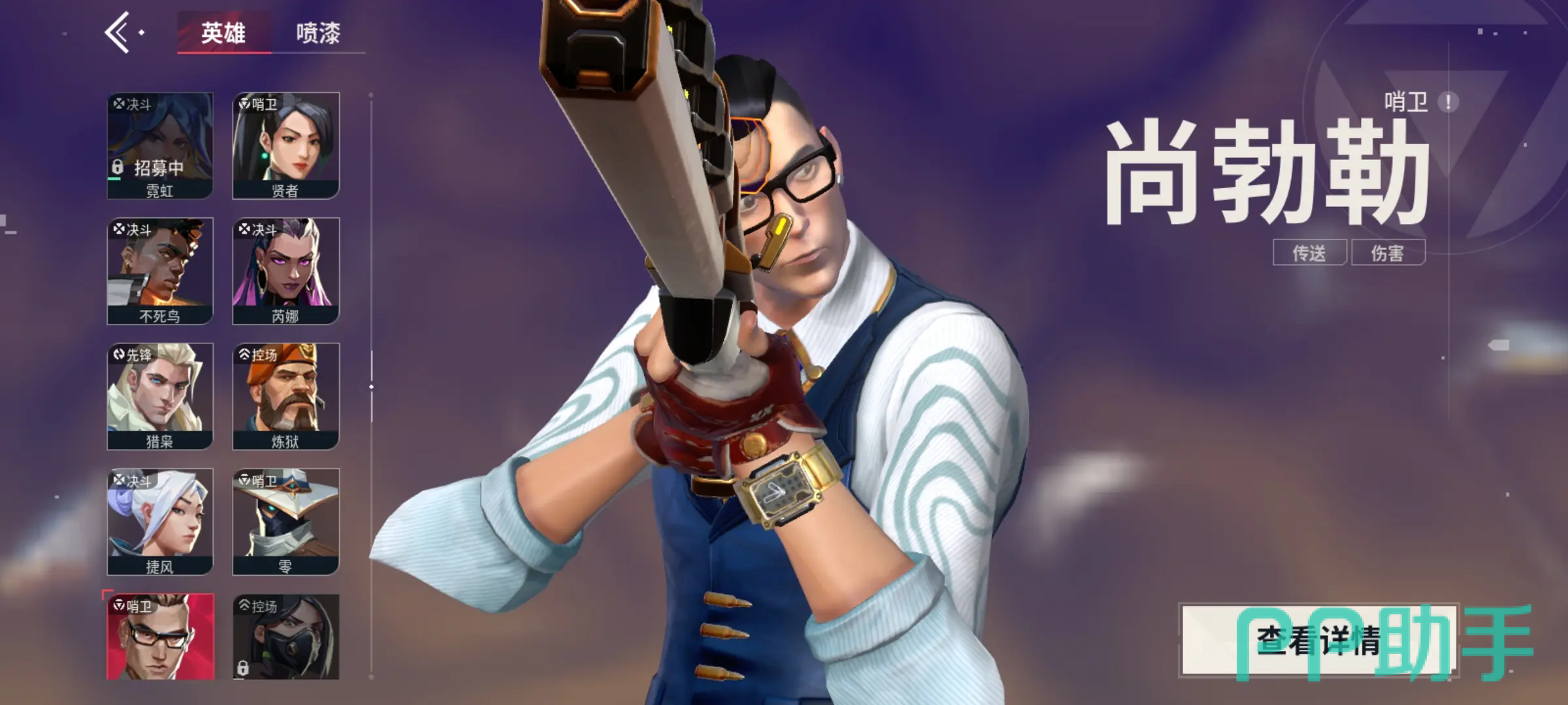 三技能激活后,尚勃勒将获得一把重型手枪,提升中远距离交火能力。大招则召唤专属狙击武器,命中敌人上半身即可直接击败目标,且阵亡者所在位置会生成减速力场,进一步限制敌方走位。综合来看,他在节奏掌控与信息获取方面具有显著优势,是团队不可或缺的战略核心。