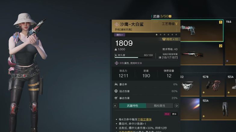 也可以选择大白鲨这个枪械,这是一个整体在元素爆发和伤害上都非常优秀的枪械,尤其是和pve这种暴击流的玩法,还有静默归途,这个比较适合难度更高的模式,可以在对战的过程中产生冰霜漩涡伤害,非常适合在对战的过程中借助这种伤害减缓对方的移动速度,但只有单纯的武器是远远不够的,每把枪械都要搭配上适合的防具,模组,还有食物,大白鲨比较适合搭配的食物是南瓜,星空派或者是碎裂面包,在模组的选择上可以选择爆炸相关的伤害,如果是使用静默归途的话,那可以搭配隐秘行者罩衫,在后期对战的时候会相对变得更加轻松一些。