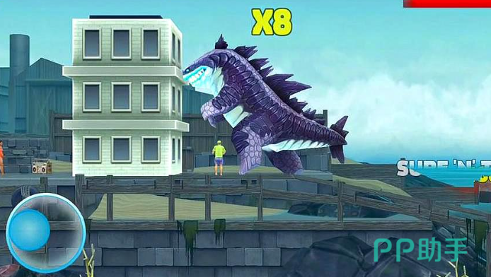 哥斯拉鲨鱼的面板怪物属性使其机动性很高,但也由于血量一般所以容错也一般。它的特殊技能“溶解辐射”在释放之后能够打出范围特别广的秒杀光束,前方被秒的敌人分数也*2。这项技能可以在吃掉其他生物之后积攒能量值,然后造成大量伤害,非常适合清理密集的敌群。在水中这个技能效果不大,但在天空中可以利用它来收割直升机,提高容错率。