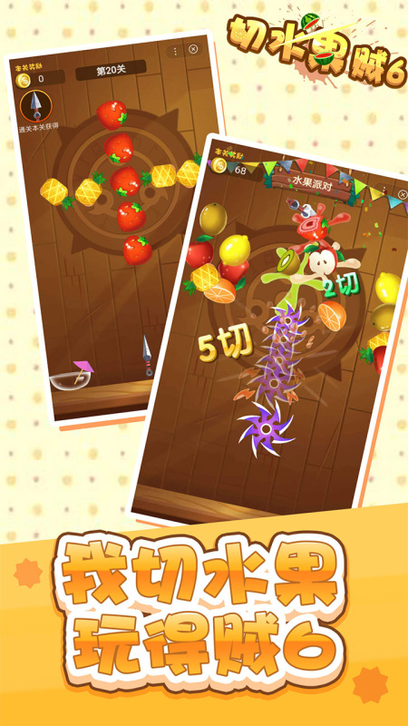 游戏采用清新细腻的画风,每一颗水果都饱满多汁,跃动间仿佛能闻到果香。而你的武器一把锋利无比的刀,只需轻轻一划,水果便应声而裂,果汁四溅,为屏幕染上一抹绚丽的色彩。经典模式考验耐力与稳定性,而街机模式则是速度与刺激的较量,连击越多,得分越高,每一次精准切割都让人热血沸腾。