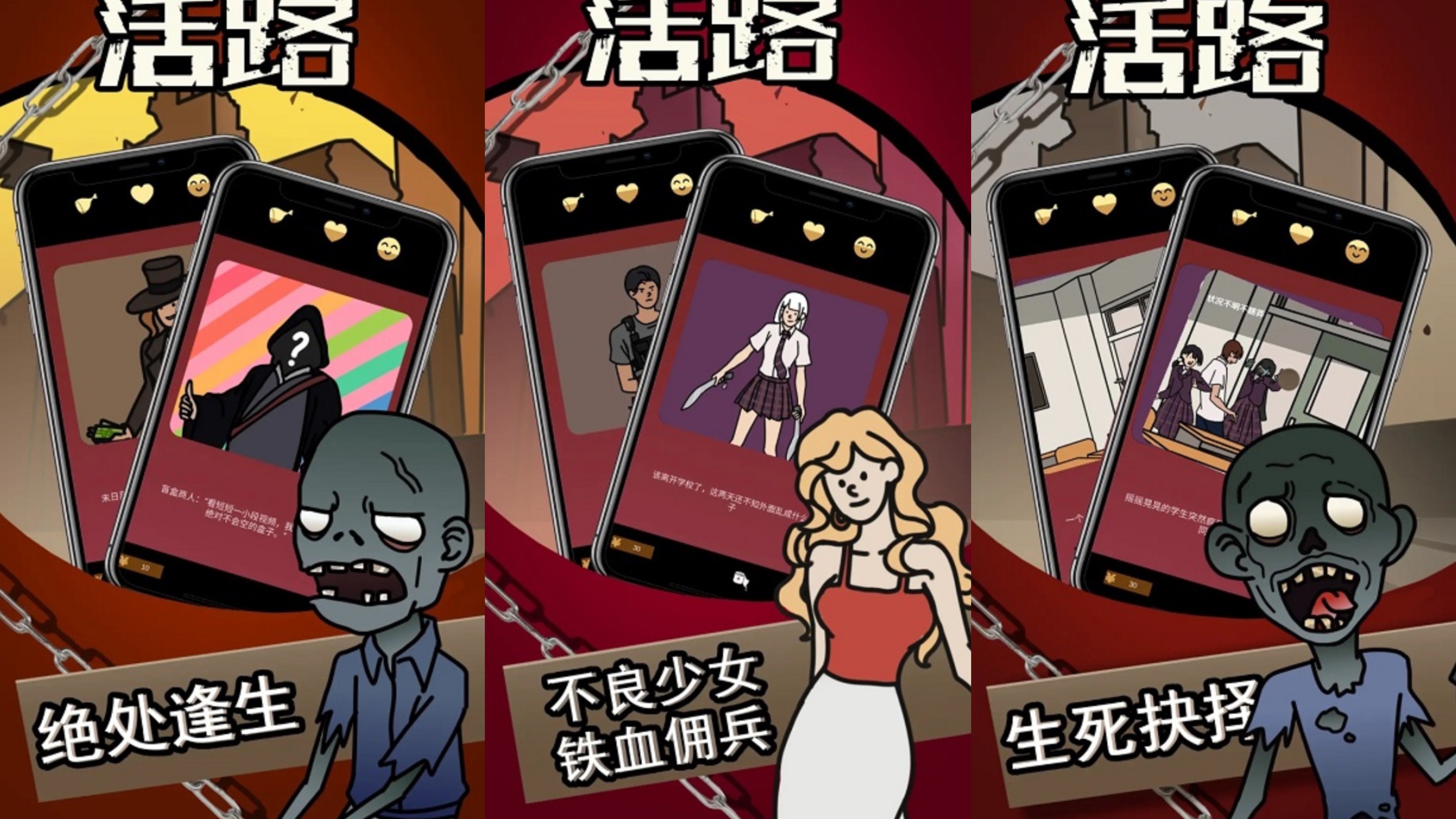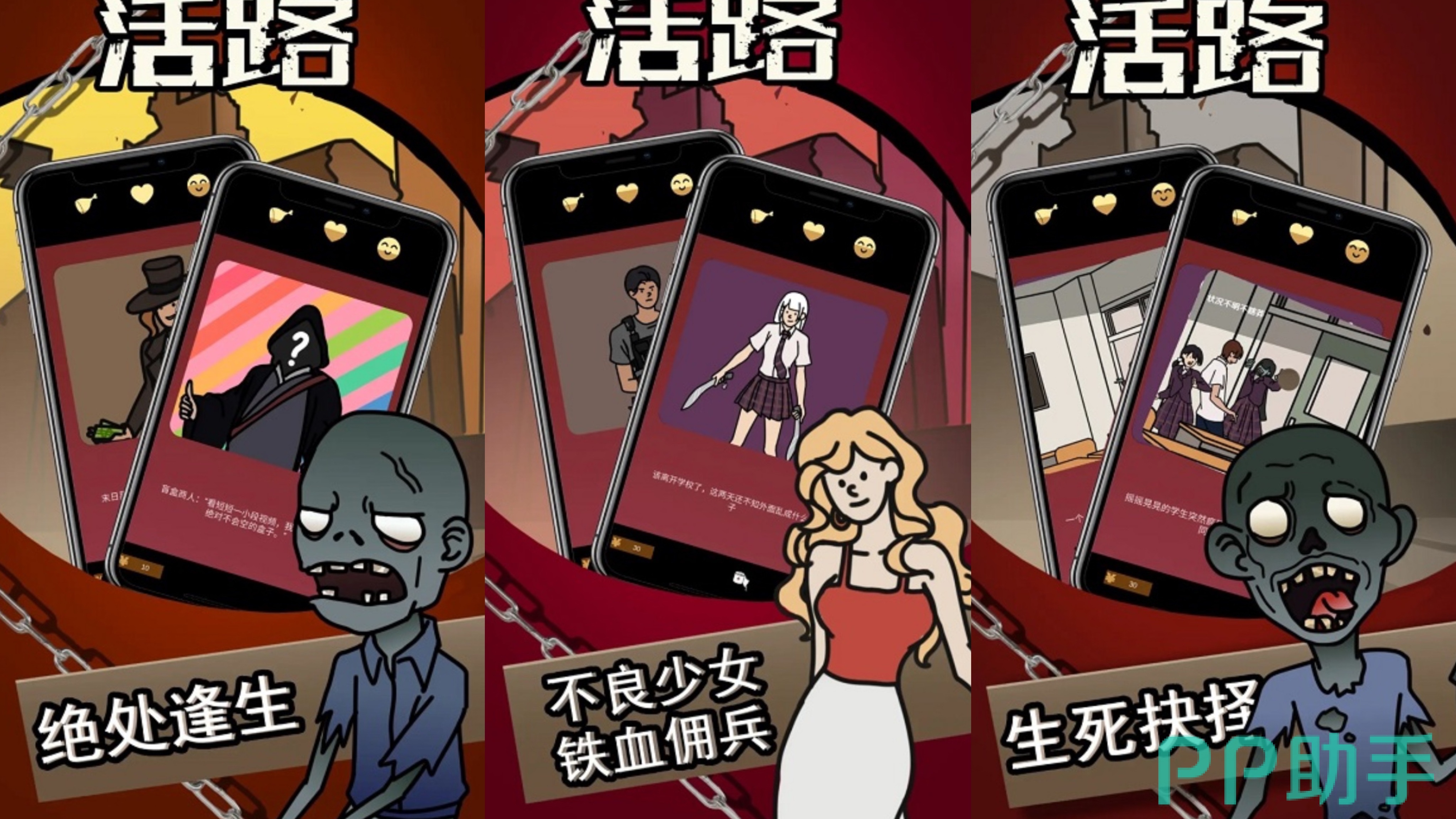 在充满尸潮的末日中,危险处处都在!除了可怕的丧尸,还有扭曲了人性的人们!一个人想要存活下去就必须要建立属于自己的安全基地,去收集更多的生存物资,制作装备来保护自己!为了避免资源浪费,你还需要仔细分配管理手上的物资。同时,你还需要和其他的幸存者们交流信息,建立合作关系。不过,人心难测,要小心其他幸存者对你不利!总之,末日生存,只有自己靠的住,你的每个选择都会直接影响你的生存挑战!加油吧!幸存者!闯出一条属于你的末日活路!