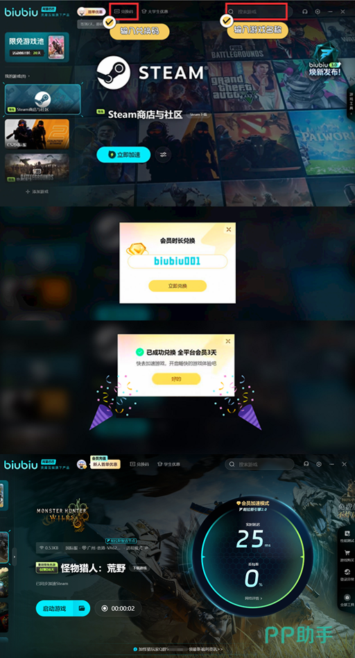 在掌握操作技巧之后,想要体验游戏,担心炸房的朋友可以用biubiu加速器,现在还有免费加速活动以及抽奖活动。时间是2月7日到2月17日,感兴趣的朋友就别错过。这一次的抽奖活动还是比较吸引人的,有游戏本体还有实物周边奖励,除此之外最高还可以获得365天的加速时长。对新用户而言,在第1次注册之后能够得到3小时的免费加速时长。但这并不是最终的福利,还可以来到页面复制口令【biubiu001】延长72小时,最终所能得到的免费加速时长为75小时。最重要用了这款加速器,让你联机的时候不会被炸房。