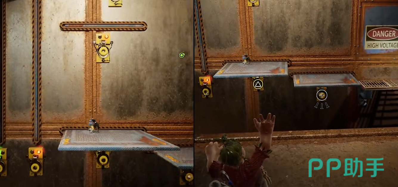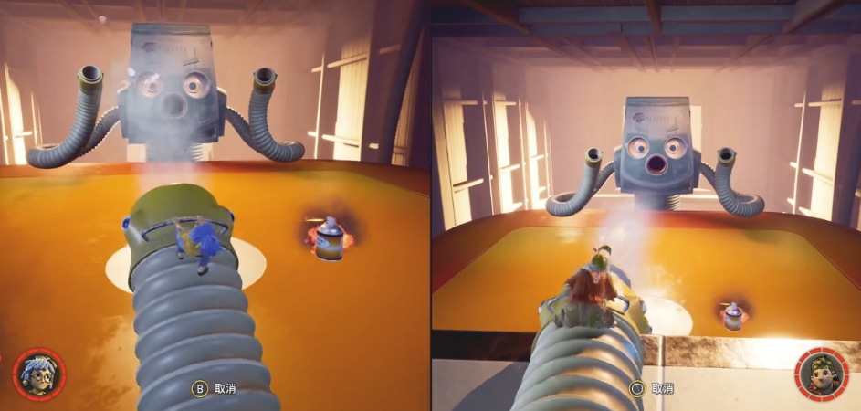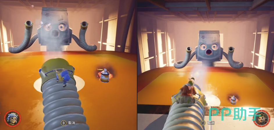 游戏采用左右分屏视角,两名玩家需分别操控科迪与小梅,在物理规则、技能组合与环境反馈高度耦合的设计框架下同步行动。角色具备即时复活机制,且存档点密度极高,实际通关难点并非操作容错率,而在于实时沟通与节奏预判。例如“工具箱”章节中,一人使用充气锤敲击支点制造弹跳平台,另一人须精准把握起跳时机;在松鼠与蜂蜜Boss战中,需交替使用树脂枪固化路径并由火焰枪引燃触发持续燃烧伤害;此外,各章节均设有非强制但具叙事补完意义的隐藏交互点——如俄罗斯方块房间需高频扫描墙面获取线索,雪景球场景中与乌龟的多次触碰可解锁特殊成就,这些设计旨在引导玩家放慢节奏、深入体察世界观细节。