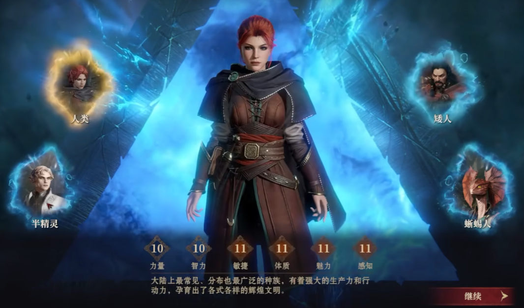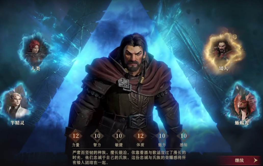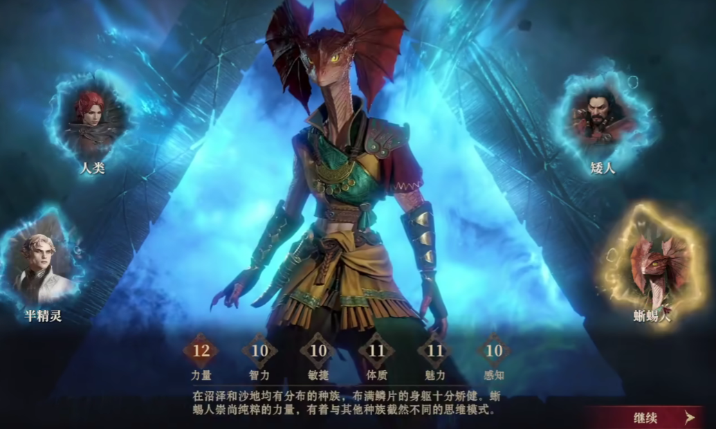 游戏有四个种族可供玩家选择,他们分别是人类族、矮人族、半精灵族、蜥蜴人族。