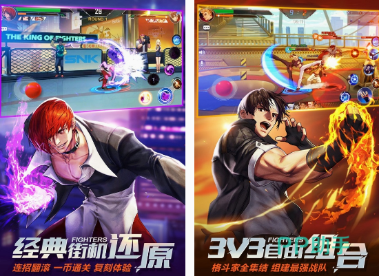 这款以拳皇中大家耳熟能详的角色,正版授权的动作游戏,除了支持1V1的对战模式,还有3v3的多人对战模式,呈现了街机闯关游戏,所带来的紧张刺激感。需要每个玩家,在这里面选择各种角色,与人气也很高的战斗家进行较量,进行公平竞技模式。如果你也想要在每次展开动作体验的时候,成为最终的获胜者,需要点击屏幕,使角色做出各种炫酷的动作。
