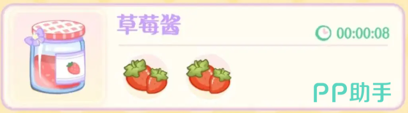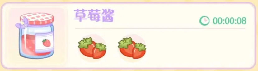 草莓酱在游戏当中需要消耗两枚草莓,需要消耗的时间为八秒钟。